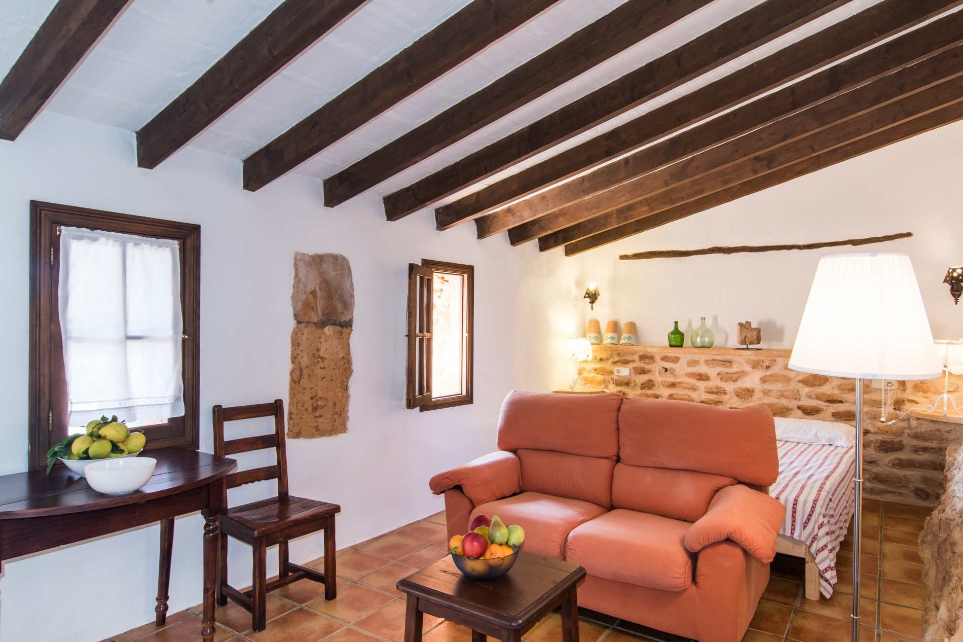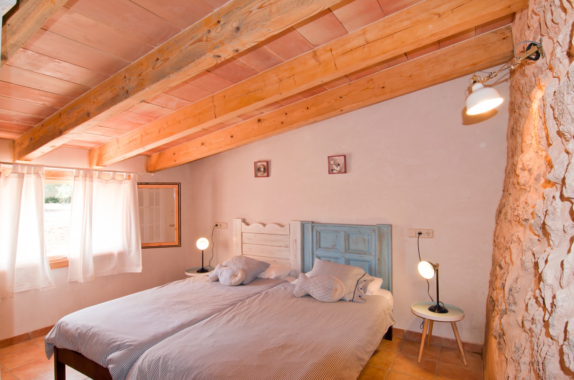 A finca with all the characteristics of a traditional Majorcan home with all the Mediterranean colours and smells; where the strength of its incredible character is the effort of diferent generations of Mallorcan farmers. Situated in one of the most beautiful parts of the island with views of the bay of Alcudia, without losing the view of the Sierra de Tramuntana which is part of the World Heritage Site (UNESCO) The houses were constructed in the 15th century by farmers who worked the land among the fig, olive and almond trees and also the sheep and donkeys. Throughout the years we have continued renovating our house with love and affection to offer a charming place to stay. We, the people of Es Rafal Roig, guarantee you a fantastic famoly holiday offering you our best knowledge of the island. This finca is for everyone to enjoy, from young to old, with lots of animals, a play park and a small football pitch. There are also two swimming pools, one of 4m x 8m and other one of 3.5m x 2.5m which is suitable for children.